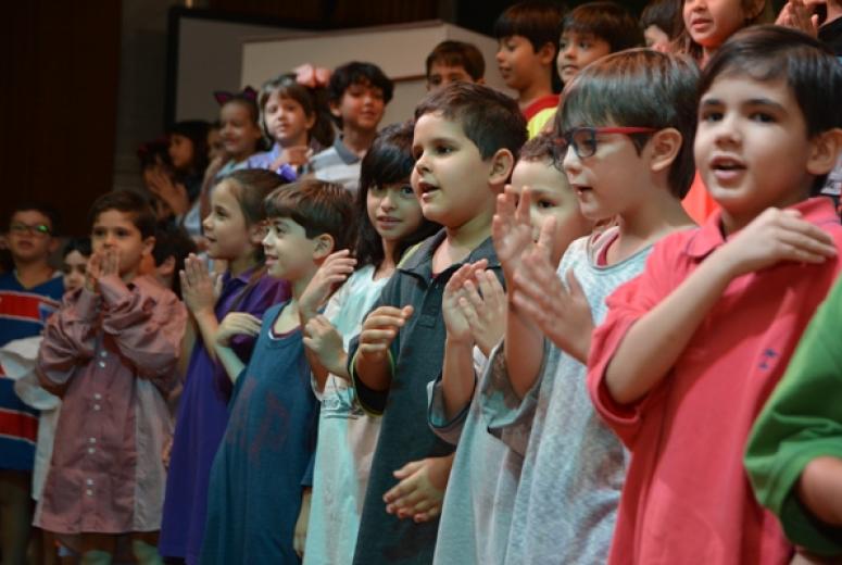Depois do espetáculo quem assumiu o comando da homenagem foram as crianças. Vestidas à caráter, ou seja, com as roupas dos pais, fizeram saudações espontâneas, acenos afetuosos, orações em português e inglês e ainda interpretaram a música Pequenas Alegrias. “Mas, se a gente juntasse as pequenas alegrias/Seriamos felizes todos os dias”...