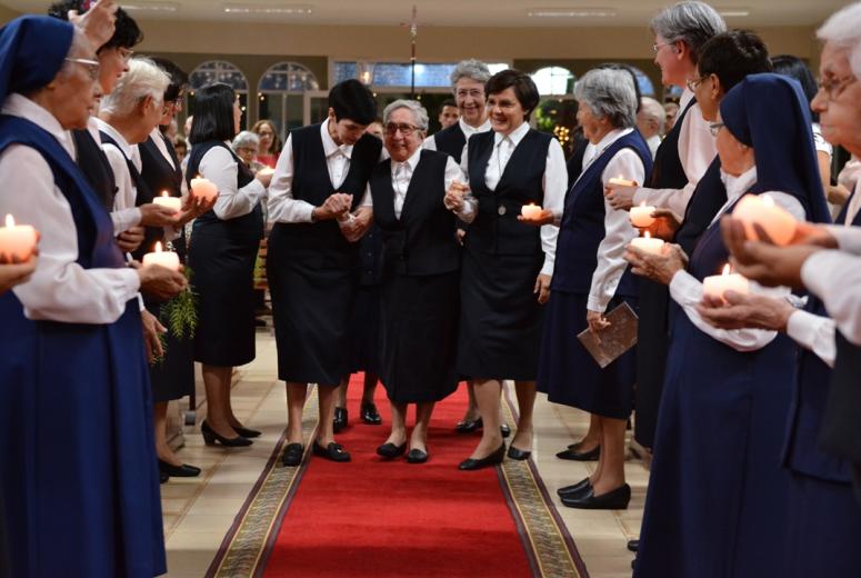 Hoje, chega aos 60 anos de vida religiosa com uma mente vigorosa e o mesmo sorriso. Anos muito bem vividos! Nesses últimos dias, preparou-se cuidadosamente para o seu Jubileu, que aconteceu no último sábado, dia 7 de dezembro, às 18h, na Capela da Escola.